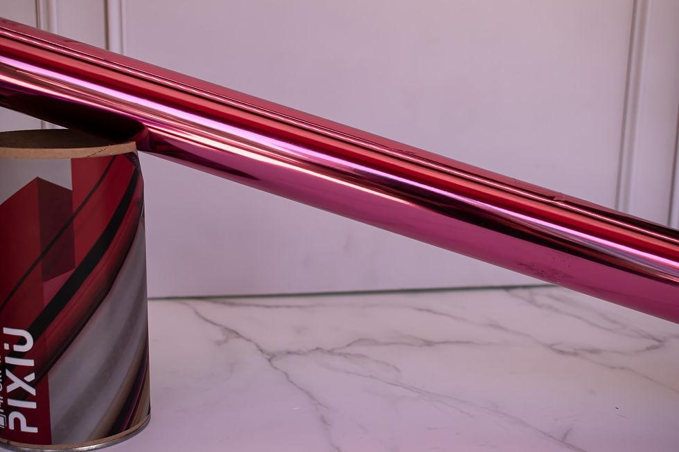 Película metalizada para transferir mediante impresiones en color negro con toner (impresora láser), pasa por una fuente calor como laminadora o plancha, para papeles lisos como opalina o papel fotográfico.